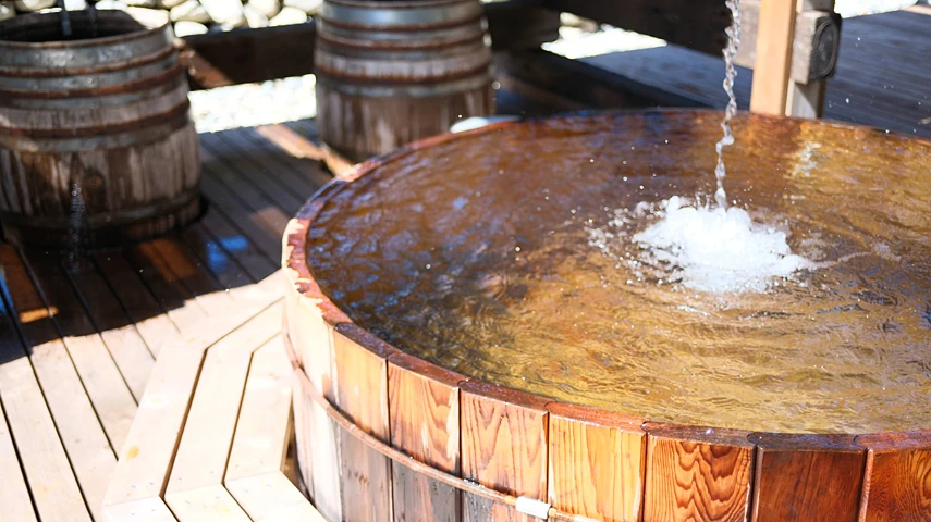 - 身体が十分温まったら、外気浴で休憩。